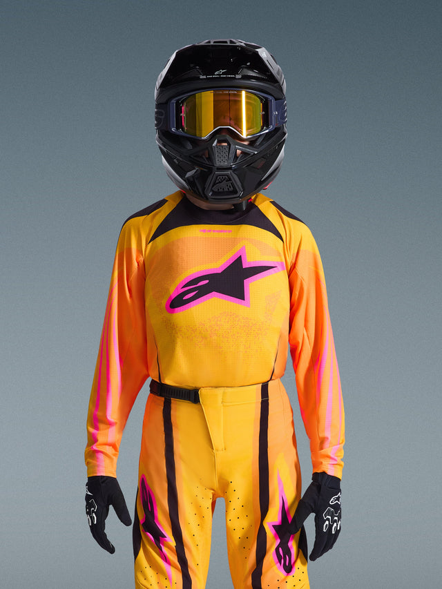 Youth motocross gear is typically designed for riders aged 4 to 16 years, with sizing that accommodates growing bodies. The collection includes multiple size ranges to ensure proper fit and protection as young riders develop their skills. Proper sizing is critical for both safety and comfort—gear that's too large can shift during riding, while gear that's too small won't provide adequate protection coverage.