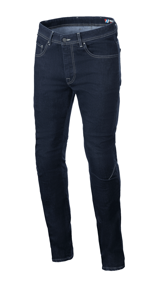 The Radium V2 Denim Pants feature a refined modern cut with a regular tapered leg and elevated finishing and trim details. The Radium V2 Denim pant is a premium five-pocket sport and urban riding jean constructed from stretch Cordura® material technology with a cotton polyester and polyamide blend with 2% elastane. The pants have aramidic reinforcements on the knees, and polyamide lining on the hips for excellent Double-A rated abrasion resistance. Internally, for impact protection there is adjustable Level 1 rated Nucleon Flex Plus armor, which sits in a 3-position adjustable knee pocket with color-coded stitching to differentiate the individual pockets which measure in 3 cm increments to dial in the perfect rider fit.The denim material of the Radium V2 tech riding pants has a thermal regulation treatment to maximize breathability and ventilation comfort on warmer days. The pants are pre-curved in the knees, incorporating an engineered back leg cut, and have a shaped back waist to further enhance rider protection and provide high levels of rider comfort.