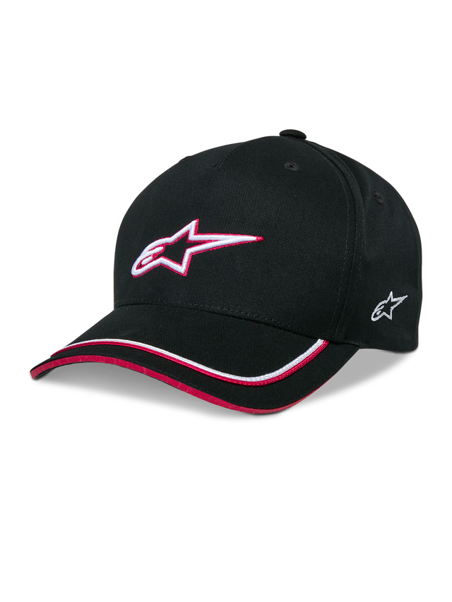 • Bordado frontal 3D do logótipo Astars, com logótipo lateral bordado plano, e acabamento de sutache duplo na aba