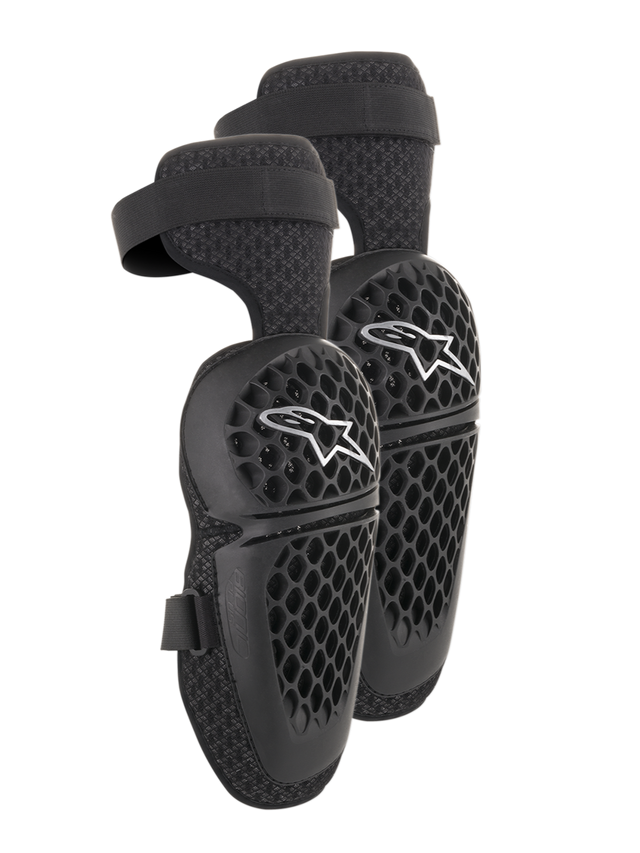 Sistema de fechamento com duas tiras nos Protetores de Joelho especialmente projetado para oferecer mais conforto e ajuste, com a tira superior montada acima do joelho e a tira inferior posicionada para um ajuste ergonômico.