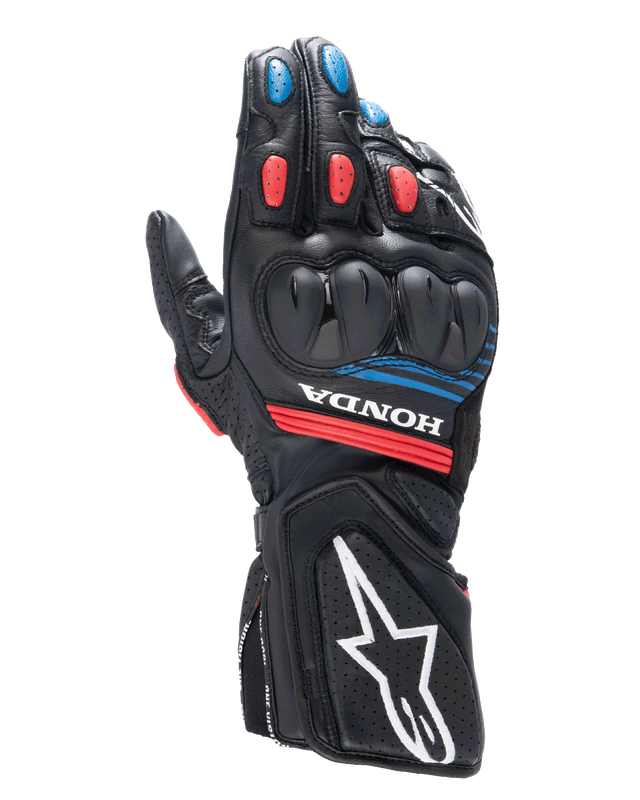 Uma luva universal para pilotagem repleta de DNA de corrida para máximo desempenho, as Luvas de Couro Honda SP-8 V3 são construídas com couro de cabra de grão integral altamente resistente à abrasão e material de couro sintético. Graças à sua avançada proteção de articulação SP de dupla densidade derivada do MotoGP, as SP-8 v3s oferecem altos níveis de proteção. Com uma construção de dedos pré-moldada, um fecho de punho com gancho e laço, e um novo inserto de aderência anatomicamente perfilado na palma e no polegar, as Luvas Honda SP-8 V3 oferecem um ajuste de pilotagem seguro e altamente personalizado, além de altos níveis de movimento e conforto para pilotos esportivos.