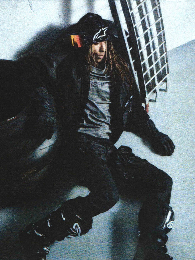 O Racer é outra peça RSRV que começou como uma camisola MX deadstock do catálogo técnico da Alpinestars. Reformulámo-la com uma gola canelada e punhos canelados para maior conforto casual. Cortámos o comprimento para eliminar o painel traseiro alongado e dar-lhe um ajuste mais quadrado. Também adicionámos a costura superior característica RSRV num padrão de corte no peito esquerdo e uma bainha overlock na cintura para um detalhe adicional.