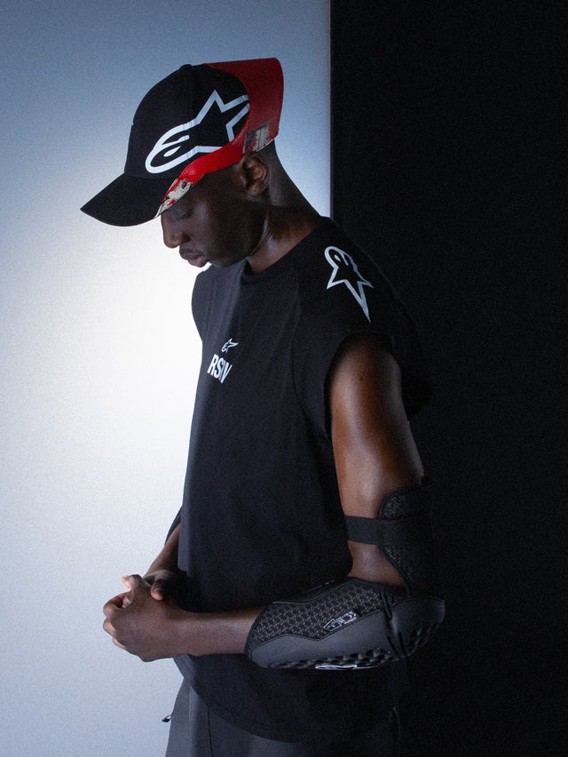 A Tech Tank SS Tee é uma metáfora com (ou sem) mangas para a abordagem de design da RSRV — não convencional e indefinível. Antiga, mas nova. Reconhecível, mas estranha. Lenta na entrada, rápida na saída. As mangas cortadas a colocam entre uma camiseta de manga curta e uma regata, enquanto a atenção aos detalhes, o acabamento e a construção a elevam muito além do básico. O corte quadrado confere um caimento contemporâneo, sinalizando que é mais do que apenas uma camiseta. Logotipos contrastantes da RSRV e da Astar adornam cada ombro e a parte superior do peito. Uma aba de silicone/velcro — perfeita para prender chaves, luvas ou boné — foi inspirada nos macacões de corrida premium da Alpinestars para motociclistas.