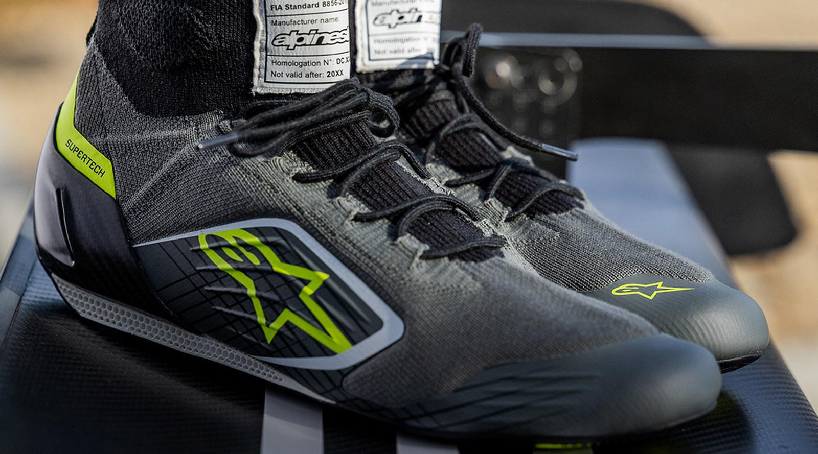 O Sapato Supertech possui uma nova construção superior totalmente tricotada, projetada para oferecer o ajuste mais próximo e confortável, adaptando-se ainda mais à morfologia dos pés, resultando em maior conforto no cockpit e redução da fadiga do motorista. Os Sapatos Supertech ultraleves apresentam um calcanhar de carbono completo para um bloqueio seguro do calcanhar, mantendo o pé firmemente no lugar. Os sapatos têm uma entressola impressa em 3D, fabricada usando Síntese de Luz Digital, o que permite maior amortecimento em áreas-chave, mais macio sob o osso do calcanhar, mas mais rígido nas bordas para máxima estabilidade. O acolchoamento de espuma de memória no calcanhar reduz as vibrações transmitidas para o calcanhar e diminui o desconforto, enquanto a sola de borracha ultrafina proporciona a sensação de condução necessária para o máximo desempenho.