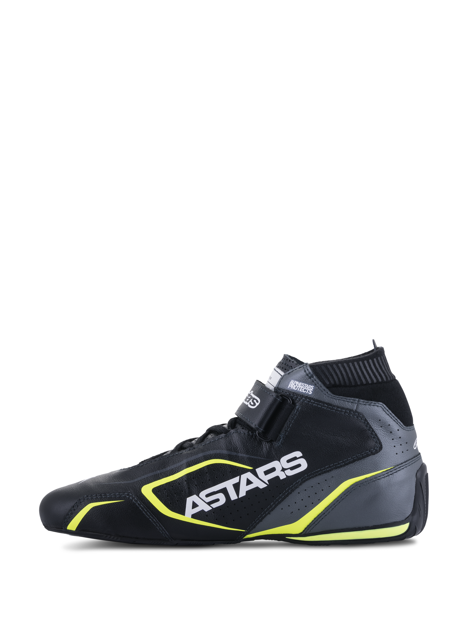 O Tech-1T V3 oferece aos motoristas níveis ótimos de conforto, ajuste e sensação. Apresentando uma construção em couro bovino integral, o sapato possui uma seção recortada no calcanhar para permitir movimento ao operar os pedais sem pontos de pressão durante a condução. Cada aspecto do sapato foi cuidadosamente considerado para manter o peso o mais baixo possível; a tira de gancho e laço é uma única camada para maior leveza, ao mesmo tempo que garante que não haja ponto de pressão no peito do pé, e o sistema clássico de fechamento com cadarço apresenta laços ocultos na lateral e medial para garantir um ajuste confortável, mas sem restrições. A nova sola de borracha, que imita um padrão de pneu assimétrico, repele água e é resistente a óleo para oferecer altos níveis de aderência e é mais espessa para níveis aprimorados de conforto dentro e fora do carro, enquanto a entressola oferece níveis tranquilizadores de amortecimento. Outros detalhes inteligentes incluem um protetor de dedo do pé externo para conforto e durabilidade e um forro Nomex® para proteger todo o pé contra o calor.
