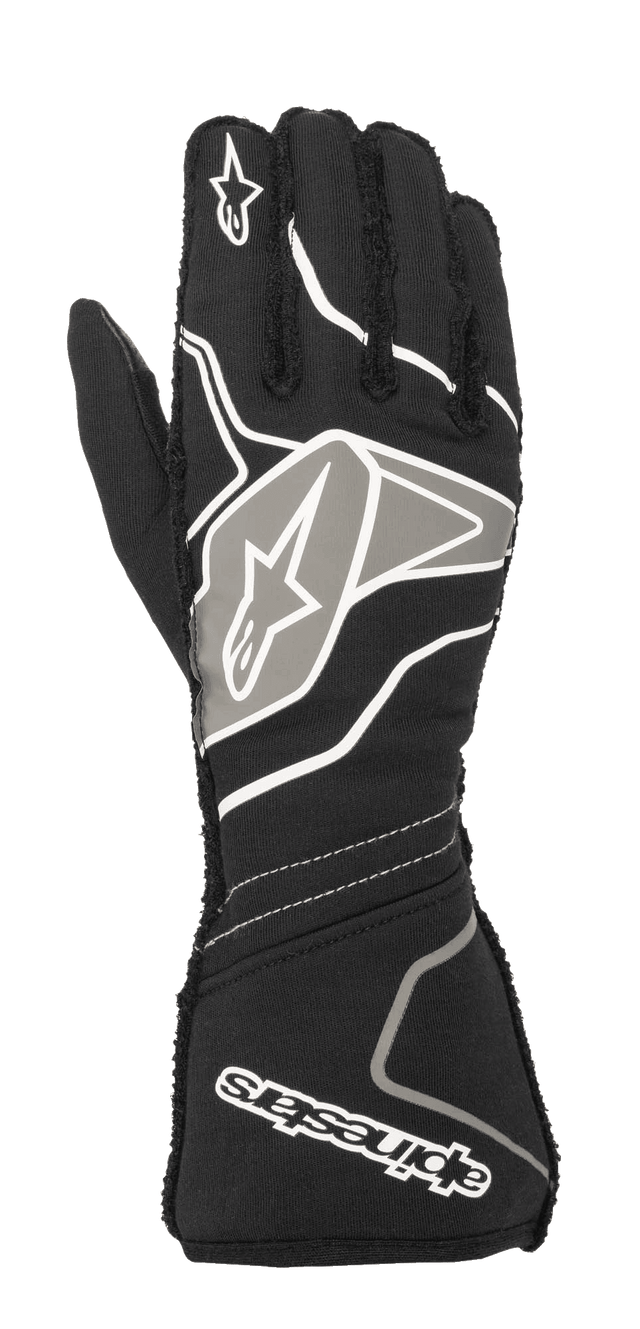 Esta luva de corrida premium apresenta costuras internas no polegar e costuras externas nos outros quatro dedos para níveis ótimos de conforto e sensibilidade; as costuras internas no polegar oferecem excelentes níveis de sensibilidade nos múltiplos botões do volante, enquanto as costuras externas proporcionam excelentes níveis de conforto e evitam o desenvolvimento de pontos de pressão nas mãos durante a condução. Esta luva está equipada com o design de punho aberto da Alpinestars com um pulso elástico de 180° para fácil entrada e ajuste seguro. Outros toques de design incluem uma palma interna tratada com látex para minimizar micro deslizamentos ao segurar o volante e uma superfície de silicone para melhor flexibilidade e controle. Há também uma impressão compatível com toque no polegar e nos dedos indicadores para usar dispositivos móveis enquanto estiver na pista.