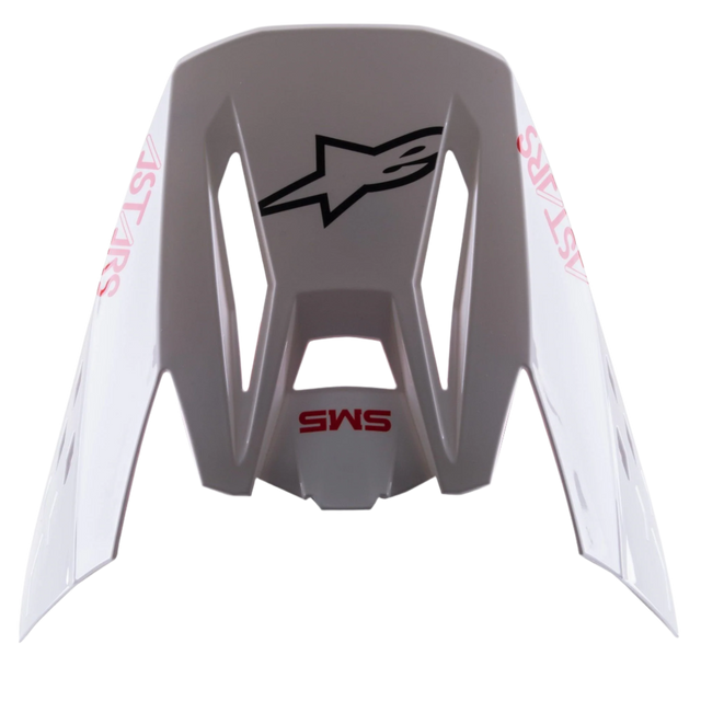 Viseira Alpinestars S-M5 Bond White Red Glossy, pala de substituição para capacete de motocross, acabamento branco brilhante com branding 'SM5' e 'ASTARS' a vermelho, logótipo central de estrela preto, acessório de encaixe para equipamento de todo-o-terreno
